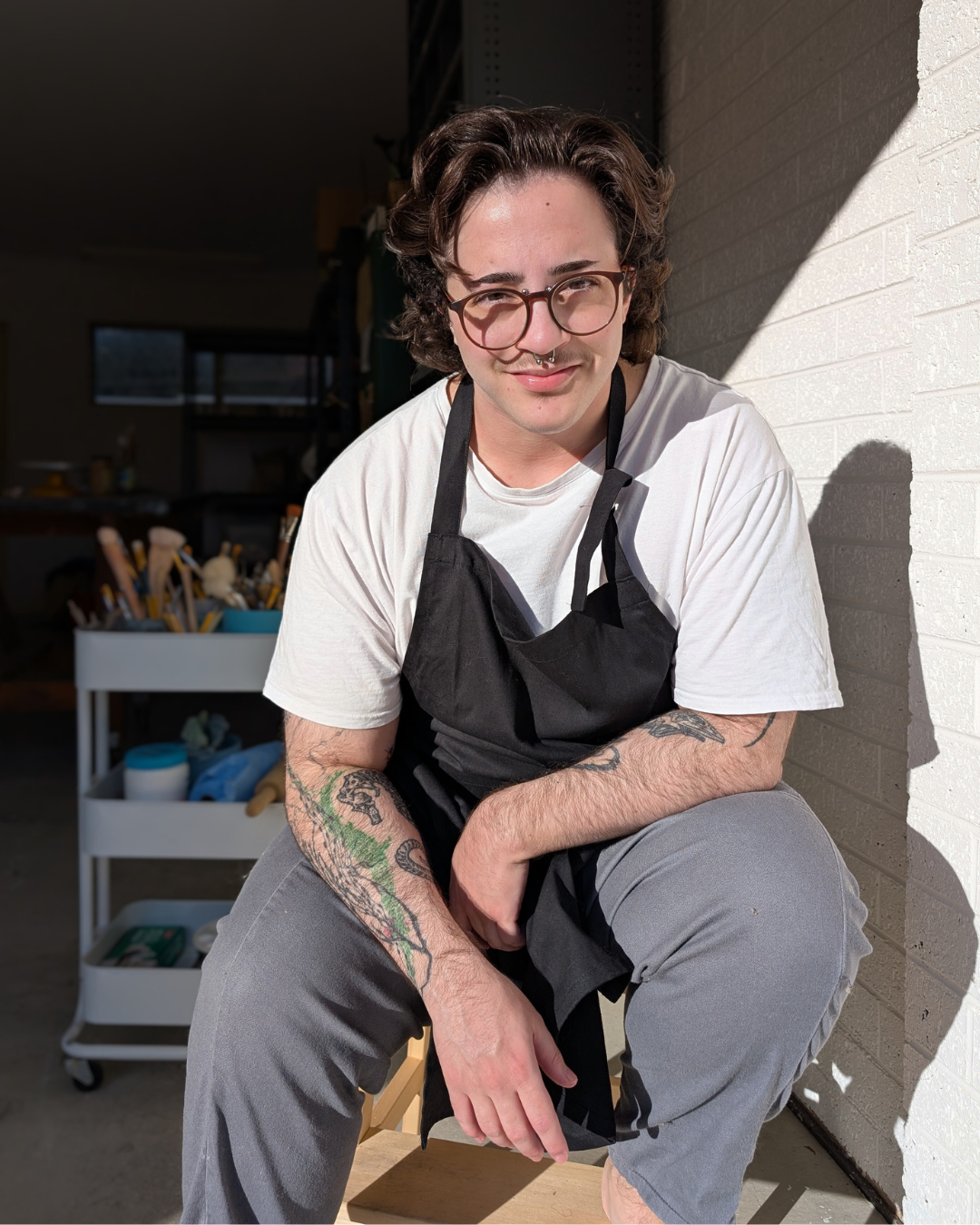 Tarcis Fenech (b. 1998) is a multi-media artist working from their studio in so-called Maryborough, Victoria. Informally trained in ceramics, they rely on rigorous experimentation to create process-responsive sculptures that retain evidence of the extreme conditions withstood in the kiln: melting, pitting, cracking, joyfully embellishing with glitter and plastic gems to capture the tension of whimsy and melancholy. Fenech’s practice maintains a focus on spirituality and their Maltese-Australian heritage, with their body of work a quantized exploration of fantasy, ritual, and reminiscence.